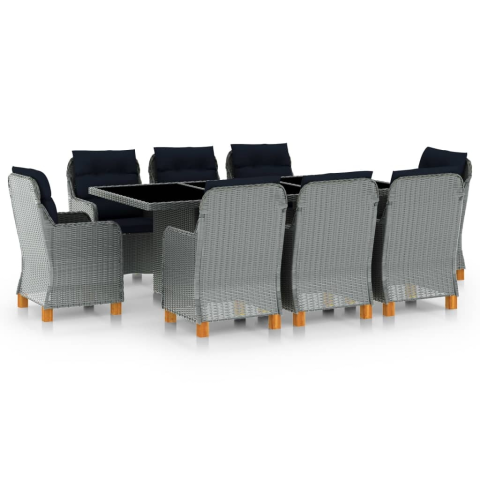 Teljes vidaXL 9 részes világosszürke polyrattan kültéri étkezőszett párnákkal termékleírás