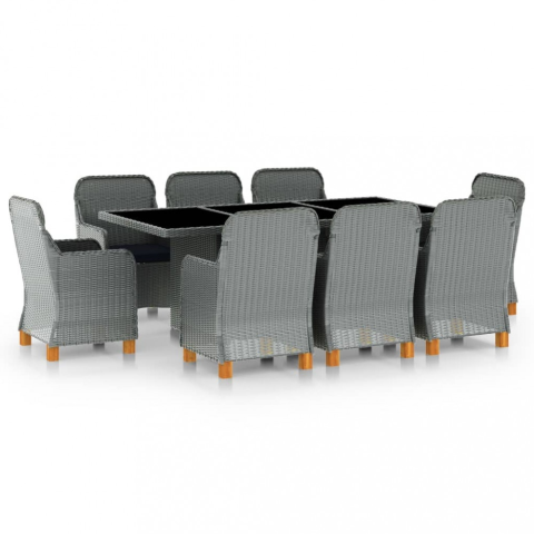 vidaXL 9 részes világosszürke polyrattan kültéri étkezőszett párnákkal kerti bútor termékleírás