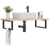 A falra szerelhető mosdópolc biztonságosan a falhoz rögzíthető, elegáns és helytakarékos megoldást nyújtva fürdőszobájának. Erős és tartós: Ez a mosdópolc acélszerkezettel és tömör bükkfa lappal lett ellátva, így erős, stabil és hosszú élettartamú. Helytakarékos: A lebegő mosdókagylópolcon bőséges hely van krémek és apróbb tárgyak tárolására. A téglalap alakú formának köszönhetően törölközőket vagy egyéb dolgokat akaszthat a tartóra, hogy h