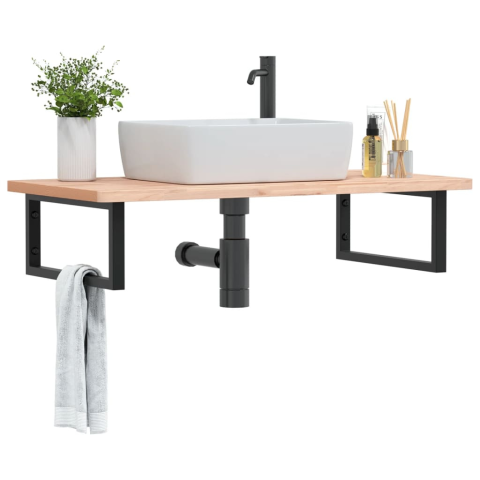 A falra szerelhető mosdópolc biztonságosan a falhoz rögzíthető, elegáns és helytakarékos megoldást nyújtva fürdőszobájának. Erős és tartós: Ez a mosdópolc acélszerkezettel és tömör bükkfa lappal lett ellátva, így erős, stabil és hosszú élettartamú. Helytakarékos: A lebegő mosdókagylópolcon bőséges hely van krémek és apróbb tárgyak tárolására. A téglalap alakú formának köszönhetően törölközőket vagy egyéb dolgokat akaszthat a tartóra, hogy h