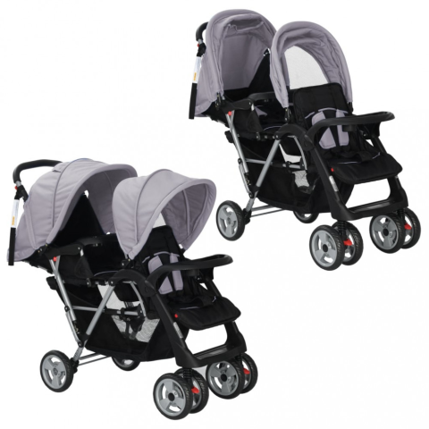 1 kép vidaXL acél tandem babakocsi szürke és fekete