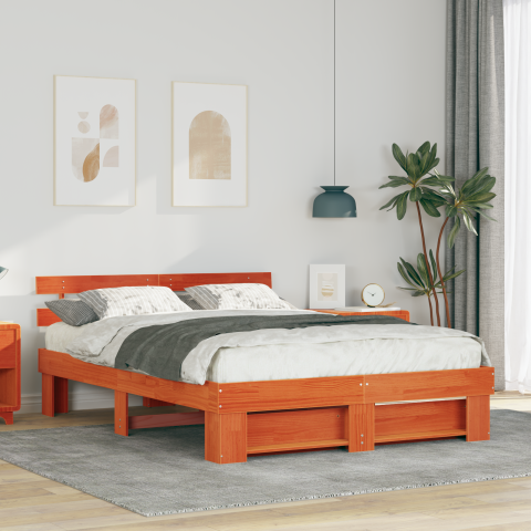 Ez a modern ágykeret fejtámlával minimalista formájú, tömör fenyőfából készült, ami meg garantálja a tartósságot és a természetes kinézetet. A fa meleg árnyalatai és sima textúrája barátságos hangulatot teremt, könnyen illeszkedik különböző hálószoba dekorkhoz. Az egyszerű, funkcionális stílusa a tiszta vonalakra épít, így mindenkinek jó választás lehet, legyen modern vagy hagyományos ízlése. Minőségi anyagok: Az ágykeret masszív fenyőfából kész
