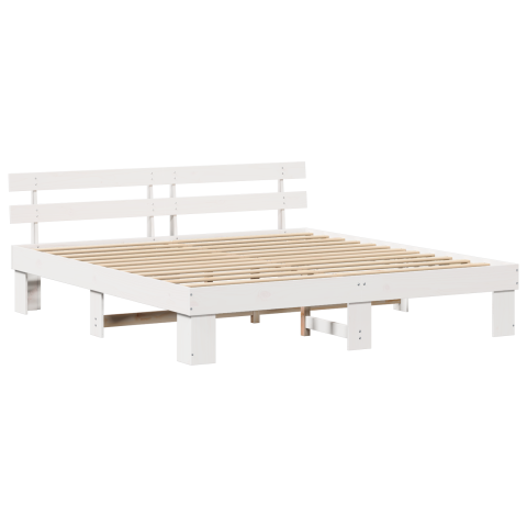 vidaXL Ágykeret Fejvéggel Fehér 200x200 cm Tömör fenyőfa (872429)