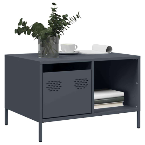 1 kép vidaXL antracit hidegen hengerelt acél dohányzóasztal 68,5x50x43,5 cm