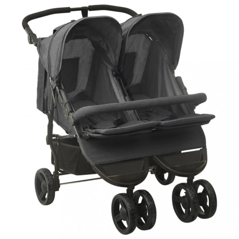 1 kép vidaXL antracitszürke acél ikerbabakocsi