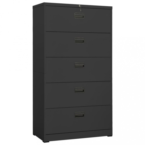 Ez a modern kialakítású irattartó szekrény ideális választás iratai tárolásához. Ez az irodai szekrény acélból készült, így tartós és könnyen tisztítható. Az 5 fiókkal és 1 zárral ellátott iratszekrényben rendezetten és biztonságban tarthatja iratait. Minden fiók 1 kivehető akasztórúddal van felszerelve, amely szabadon kombinálható levél-, aktaméretű és A4-es függő iratmappa tárolására. A 3 részes golyóscsapágyakkal ellátott fiókok zökkenőmentes