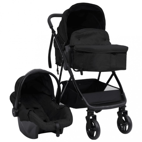 1 kép vidaXL antracitszürke-fekete acél 3 az 1-ben babakocsi