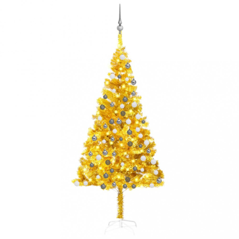 1 kép vidaXL aranyszínű PET műkarácsonyfa LED-ekkel és gömbszettel 180 cm