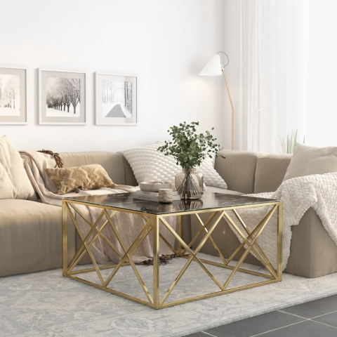 Teljes vidaXL aranyszínű rozsdamentes acél és edzett üveg dohányzóasztal termékleírás