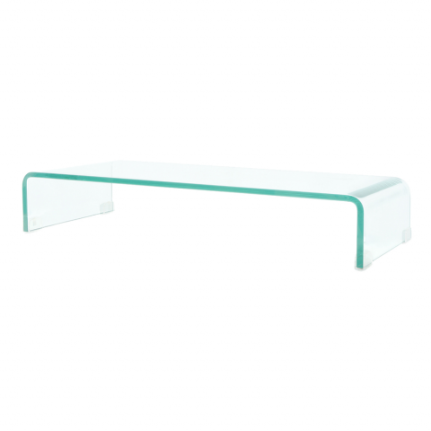 Ez a praktikus TV-állvány edzett üvegből készült. Ennek a visszafogott TV-egységnek az elegáns, áramvonalas kialakítása modern megjelenést kölcsönöz lakóterének. Ez az üvegpolc TV-állványként vagy magasítóként használható asztali monitorhoz, televízióhoz, laptophoz és egyéb multimédiás eszközhöz. A monitort magasító üvegpolcnak köszönhetően kényelmesen ülve jobban ráláthat a képernyőre, ami segít csökkenteni a nyak vagy a hát terhelését és kén