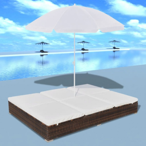 Teljes vidaXL Barna polyrattan napozóágy napernyővel termékleírás