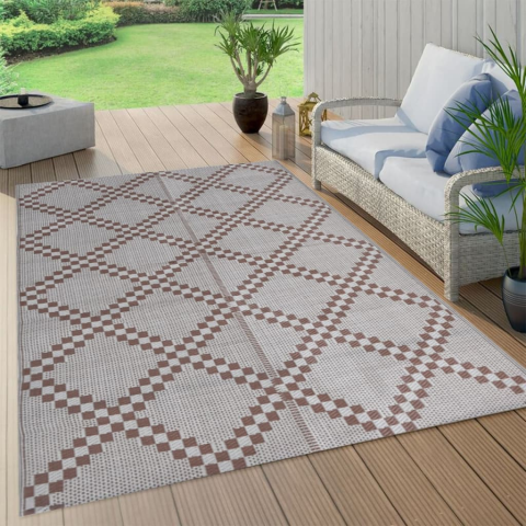 Ez a divatos kültéri szőnyeg kültéri környezete kiváló kiegészítője lesz! Helyezze a pihenősarokba az erkélyen, a teraszon vagy az udvaron, és tegye egy pillanat alatt otthonosabbá azt. Ez a polipropilénből készült szőnyeg puha, és még a medence területét is hangulatosabbá varázsolja! Emellett kétrétegű jacquard mintával rendelkezik, így egyedi és stílusos.