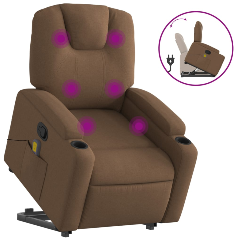 vidaXL barna szövet felállást segítő dönthető masszázsfotel (3204384) masszázsfotel 1 kép