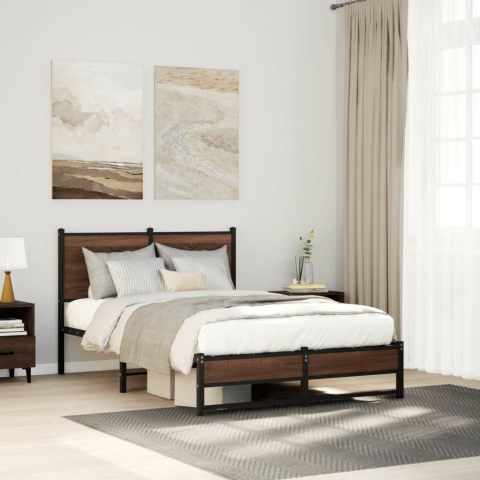 1 kép vidaXL barna tölgy színű fém ágykeret matrac nélkül 120 x 190 cm
