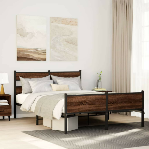Modern fém és fa ágykeret 137x190 cm - Elegáns és strapabíró 🛏️ Ez a stílusos ágykeret tökéletes választás, ha robosztus, mégis elegáns hálószoba bútorra vágysz. A kiváló minőségű fém és fa kombinációja garantálja a tartósságot és a hosszú élettartam...