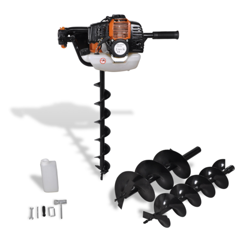 Az 52 köbcentis benzinmotorral felszerelt csiga könnyen kezelhető és sokféle fúrási feladathoz használható, mint például faültetés, útépítés, kerítésoszlop beállítása stb. Ez a benzines fúrócsiga 3 vas talajfúróval, 1 arányos palackkal, 1 fúrórögzítő készlettel és 1 szerszámkészlettel érkezik. A mellékelt 3 fúró különböző átmérőjű, így kiválaszthatja, hogy melyikkel szeretné elvégezni a munkát. Az ergonomikus kialakítású, rezgéscsillapít