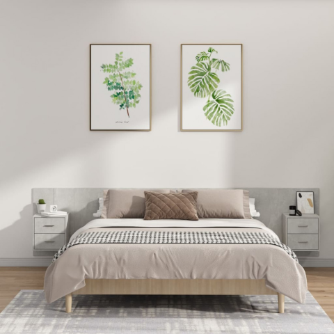 1 kép vidaXL betonszürke szerelt fa ágyfejtámla szekrényekkel