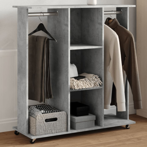 vidaXL betonszürke szerelt fa ruhásszekrény kerékkel 102 x 38 x 110 cm bútor 1 kép