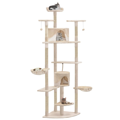 1 kép vidaXL bézs/fehér macskabútor szizál kaparófákkal 203 cm