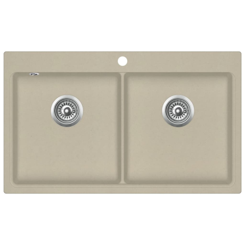 1 kép vidaXL bézsszínű, kétmedencés gránit mosogatótálca