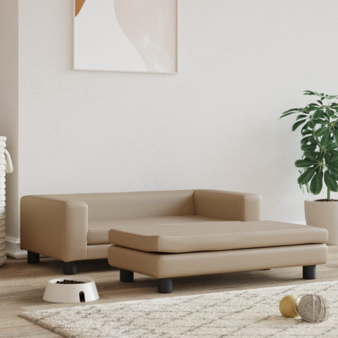1 kép vidaXL cappuccino színű műbőr kutyaágy hosszabbítóval 100 x 50 x 30 cm
