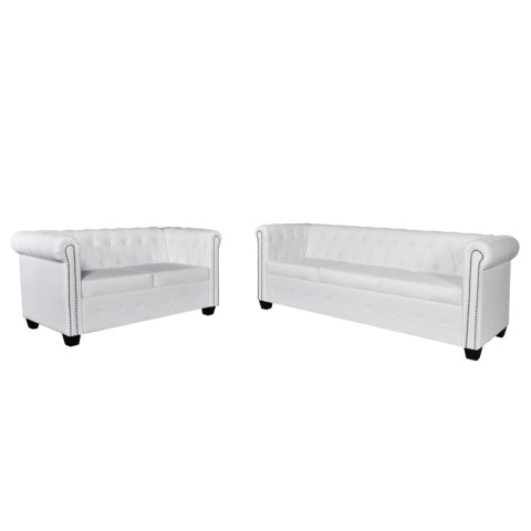 Teljes vidaXL Chesterfield 2-személyes és 3-személyes kanapé szett fehér termékleírás