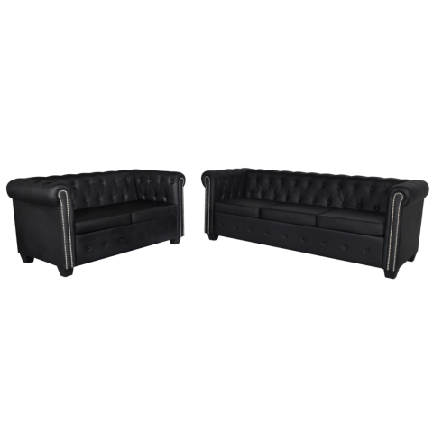 Teljes vidaXL Chesterfield 2-személyes és 3-személyes kanapé szett fekete termékleírás