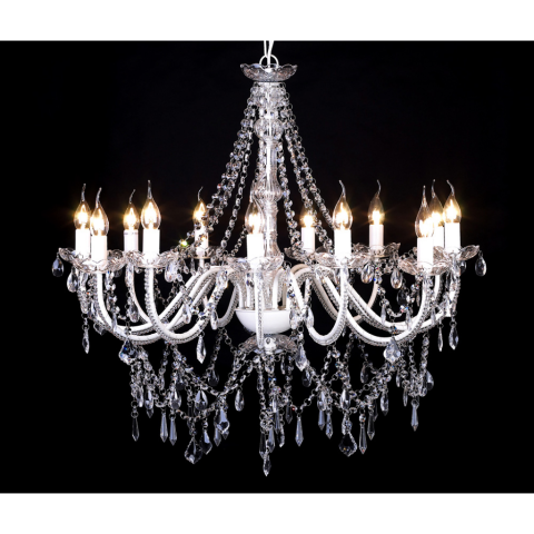 Ez az 1600 különböző kristályból és 12 fényforrásból álló csillár teljes egészében fémből és kristályüvegből készült (nem olcsó műanyagdarabokból és kövekből) ami egyedi eleganciát biztosít neki. A trendi csillárnak királyi kristály formatervezése van. A kiváló minőségű színtelen üveg magas fényű igazi világosságot és ragyogást biztosít (más fényforrásokból is), a spektrumban a színek csodálatos játéka alakul ki. Ez a mágikus csillár elb