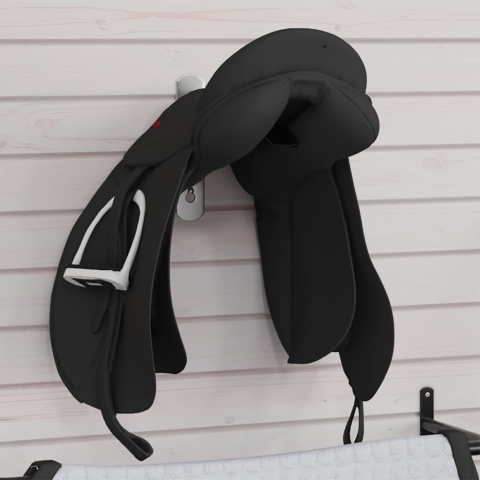 Ez az egyszerű, de hosszú élettartamú, falra szerelhető nyeregtartó hatékony módja annak, hogy biztonságosan és megfelelően tárolja a nyerget a raktárhelyiségben. Tartós és robusztus felépítés: Ez a nyeregtartó porszórt vasból készült, így erős és robusztus. Hosszú élettartamot biztosít, és ellenáll a mindennapi használat során felmerülő kopásnak.Összecsukható kialakítás: Ez a hordozható nyeregtartó használaton kívül a falhoz hajtható, így helyet t