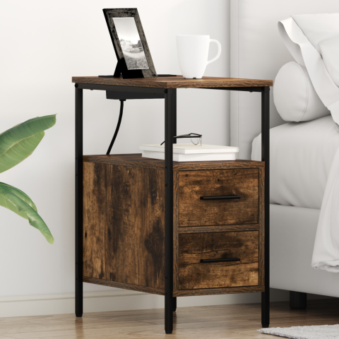 1 kép vidaXL Éjjeliszekrény fiókkal Füstölt tölgy 30 x 48 x 61 cm Faanyag