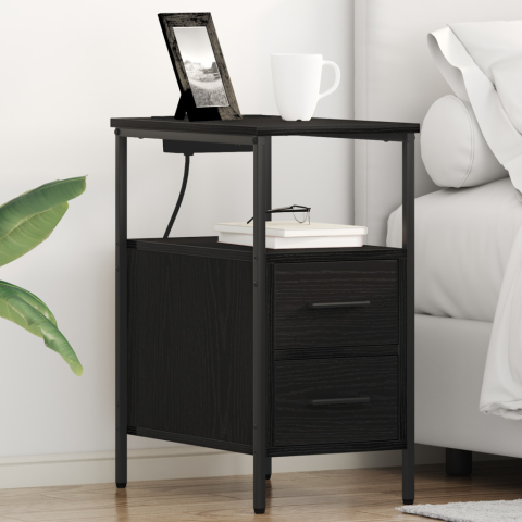 vidaXL Éjjeliszekrény fiókkal Musta tammi 30 x 48 x 61 cm Faanyag