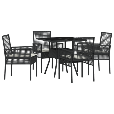 vidaXL Étkező Bútor Szett 5 Fős Fekete Rattan és Fém Tartós (3334924) kerti bútor 1 kép