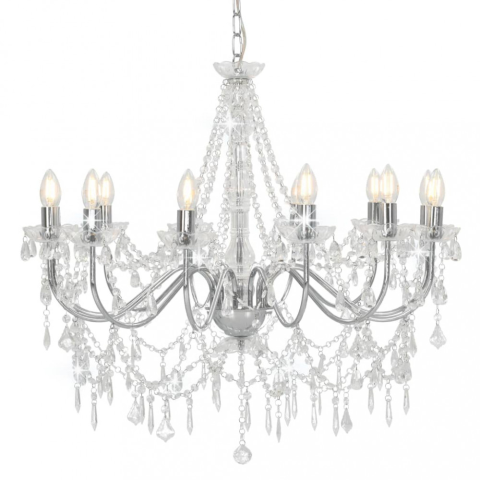 1 kép vidaXL Ezüstszínű csillár gyöngyökkel és 12 db E14 izzófoglalattal