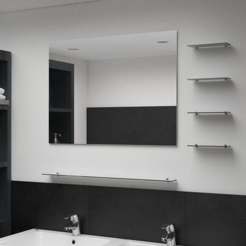 Ez az elegáns kialakítású, polcokkal ellátott falitükör praktikus és dekoratív darabja lesz fürdőszobájának, nappalijának vagy hálószobájának. Ez a minőségi edzett üvegből készült fürdőszobabútor tartós és könnyen tisztítható. A téglalap alakú tükör modern, minimalista kialakításával bármely szobát szebbé varázsol, míg a négy kisebb, illetve az egy nagyobb polc praktikus tárolóhelyként szolgál, így különféle dísztárgyakat és az öltözéshe