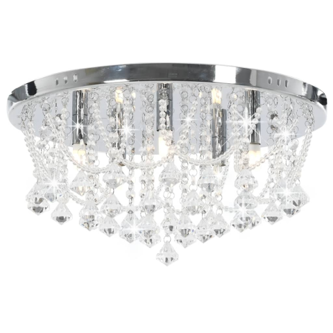 1 kép vidaXL ezüstszínű kerek mennyezeti lámpa kristálygyöngyökkel 4 x G9