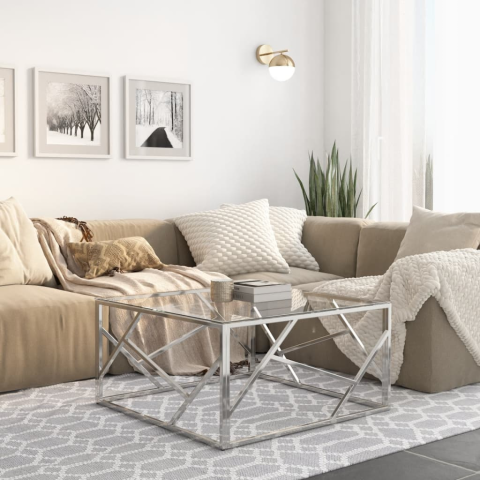 Teljes vidaXL ezüstszínű rozsdamentes acél és edzett üveg dohányzóasztal termékleírás