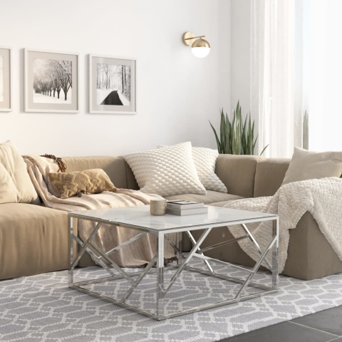 Teljes vidaXL ezüstszínű rozsdamentes acél és edzett üveg dohányzóasztal termékleírás