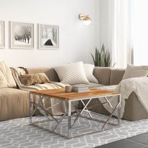 Teljes vidaXL ezüstszínű rozsdamentes acél és tömör akácfa tálalóasztal termékleírás