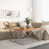 Teljes vidaXL ezüstszínű rozsdamentes acél és tömör akácfa tálalóasztal termékleírás