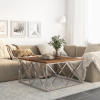 1 kép vidaXL ezüstszínű rozsdamentes acél és tömör talpfa dohányzóasztal