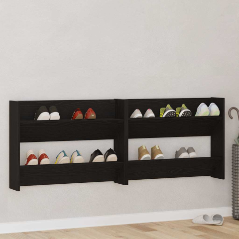 Teljes vidaXL Fali cipőtartók polcokkal Egyéb 2 pcs Musta tammi Faanyag termékleírás