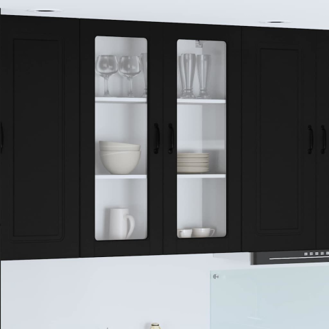 1 kép vidaXL Fali konyhaszekrény polcokkal Fekete 80 x 31 x 100 cm Faanyag