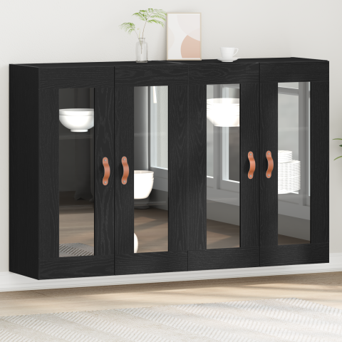 1 kép vidaXL Fali Szekrények 2 db Fekete Tölgy 69,5x34x90 cm Gyártott Fa