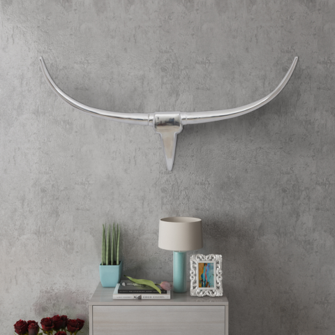 Ez az egyedi alumínium bika fej gyönyörű szarvakkal rendelkezik, és egy lenyűgöző fókuszpont lesz, mely feldobja berendezését egy kis vadászati jelleggel. Kiváló minőségű, fényezett alumínium kidolgozással egy erős szerkezettel rendelkezik. Eléggé méretes - szélessége 96 cm, magassága 44 cm. Változtassa át egyszerű falát egy bemutatófallá ezzel a profin kialakított díszítő darabbal. Könnyedén felszerelhető. Használja weekend háza, kabinja, vagy tanulóte