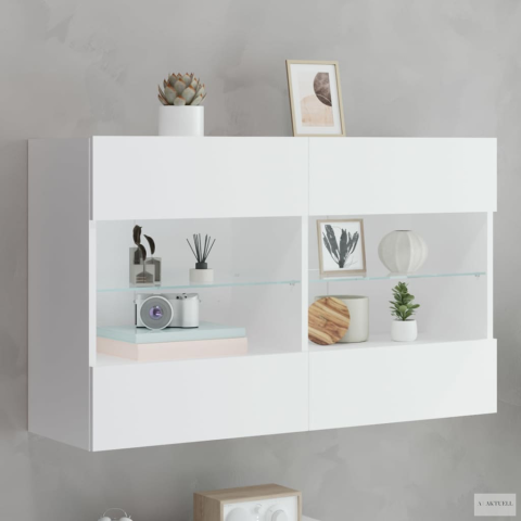 1 kép vidaXL Fehér fali TV-szekrény LED-világítással 98,5x30x60,5 cm