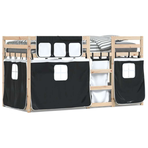 1 kép vidaXL fehér/fekete tömör fenyőfa emeletes ágy függönyökkel 90x200 cm