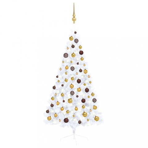 3 kép vidaXL Fehér fél műkarácsonyfa LED-ekkel és gömbszettel 150 cm