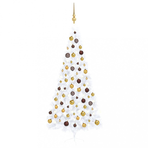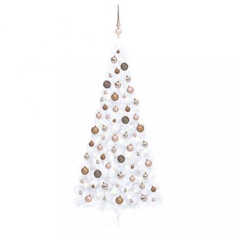 3 kép vidaXL Fehér fél műkarácsonyfa LED-ekkel és gömbszettel 240 cm