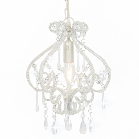 1 kép vidaXL Fehér kerek mennyezeti lámpa gyöngyökkel E14