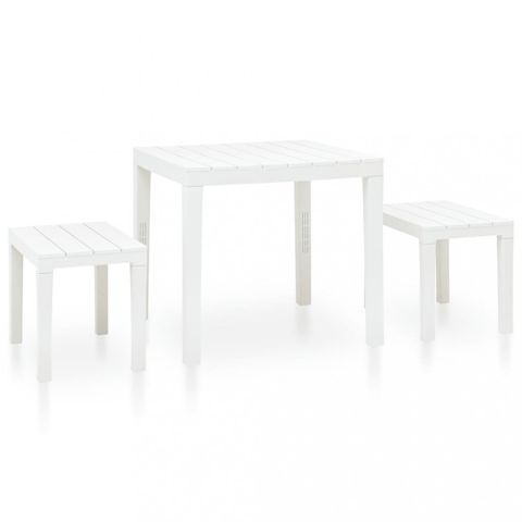 Fehér műanyag kerti szett: Tökéletes kertbe ☀️ Élvezze a szabadban a pihenést vagy étkezést családjával és barátaival ezzel a fehér műanyag kerti szettel! Tartós, időjárásálló és könnyen tisztítható, így tökéletes választás a mindennapi használatra....
